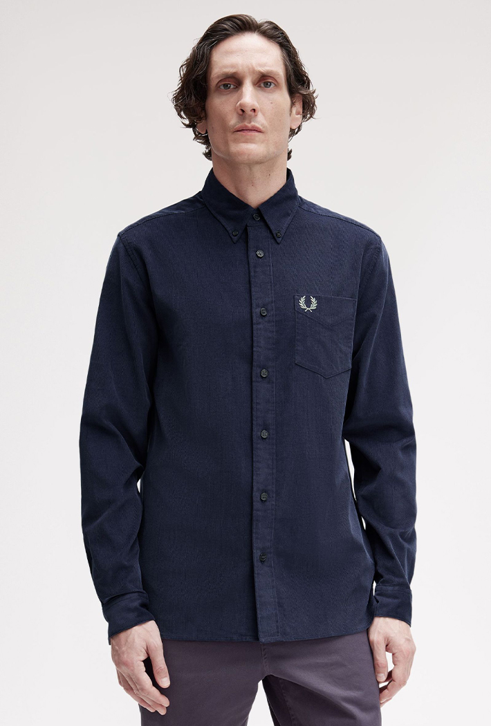 Fine wale cotton corduroy / Regular fit / Patch chest pocket / Button-down collar / Embroidered Laurel Wreath logo on left hand chest