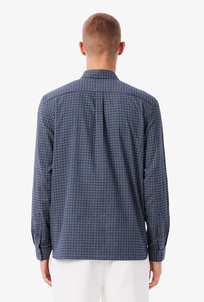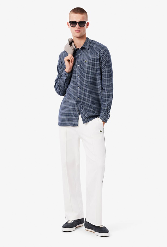 This essential shirt is a lesson in Lacoste style and elegance. This soft cotton flannel shirt features a subtle plaid motif for a relaxed chic feel. A timeless piece, finished with a signature embroidered crocodile and premium details including mother-of-pearl buttons.