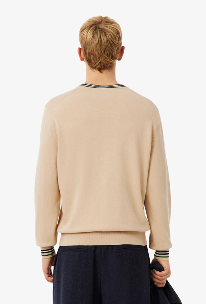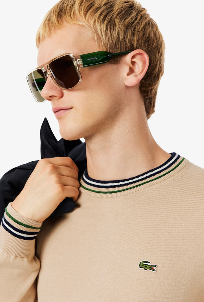 This sweater is the result of 90 years of Lacoste elegance and knitwear expertise. Made from comfortable cotton jersey with contrast stripes, finished with subtle textured stitch details. A chic, timeless piece, finished with a signature embroidered crocodile.